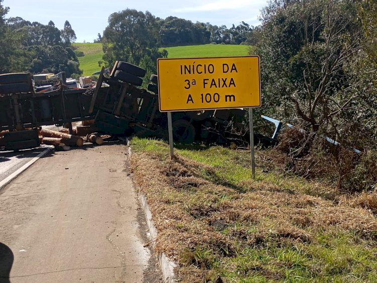 LEBON RÉGIS: CARRETA TOMBA NA CURVA DA SODA E MOTORISTA SAI ILESO